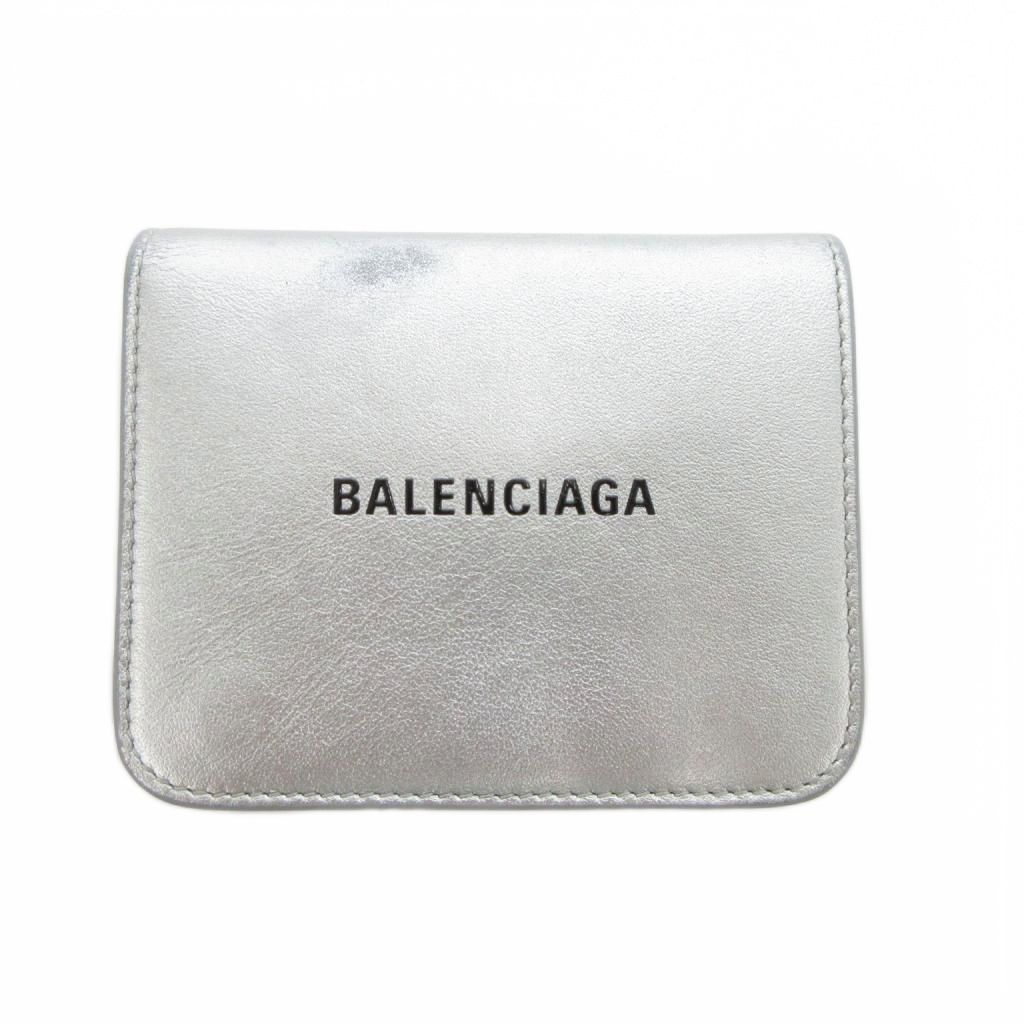 【中古】バレンシアガ BALENCIAGA CASH MINI WALLET 財布 三つ折り レザー ロゴ シルバーカラー 640173 ...