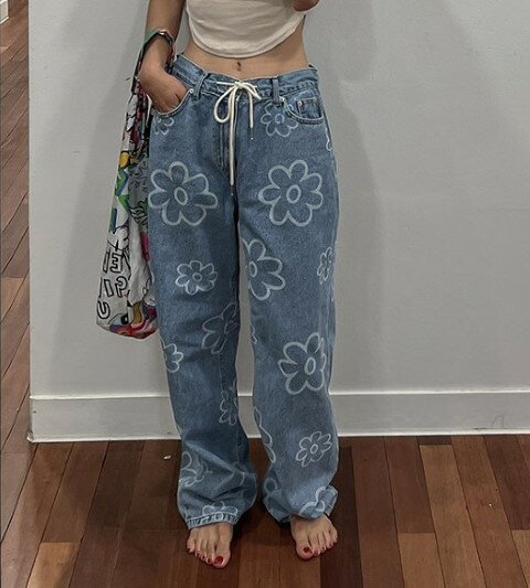 デニムパンツ ジーパン ジーンズ 花柄 デニム シンプル カジュアル【大きいサイズ レディース ストレッ...