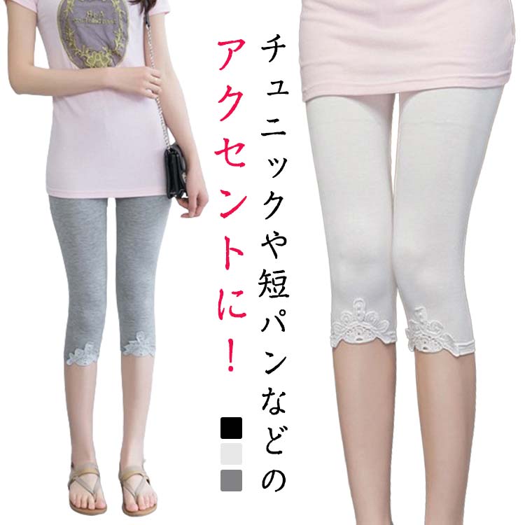 レース 花柄 レギンス スパッツ レディース 刺繍 レギパン レースレギンス 夏用 9分丈 涼しい 夏 美脚 ...