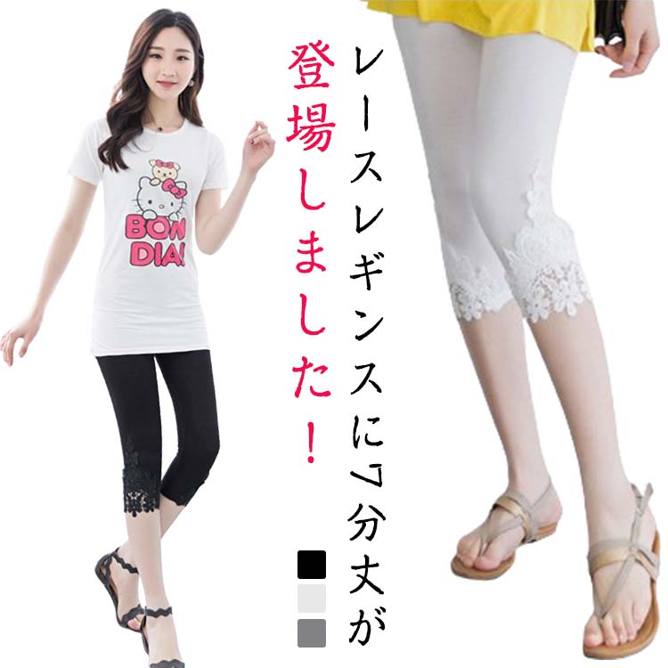 【5と0のつく日 ポイント3倍】 総レース レース 花柄 レギンス スパッツ 夏用 9分丈 レースレギンス レ...